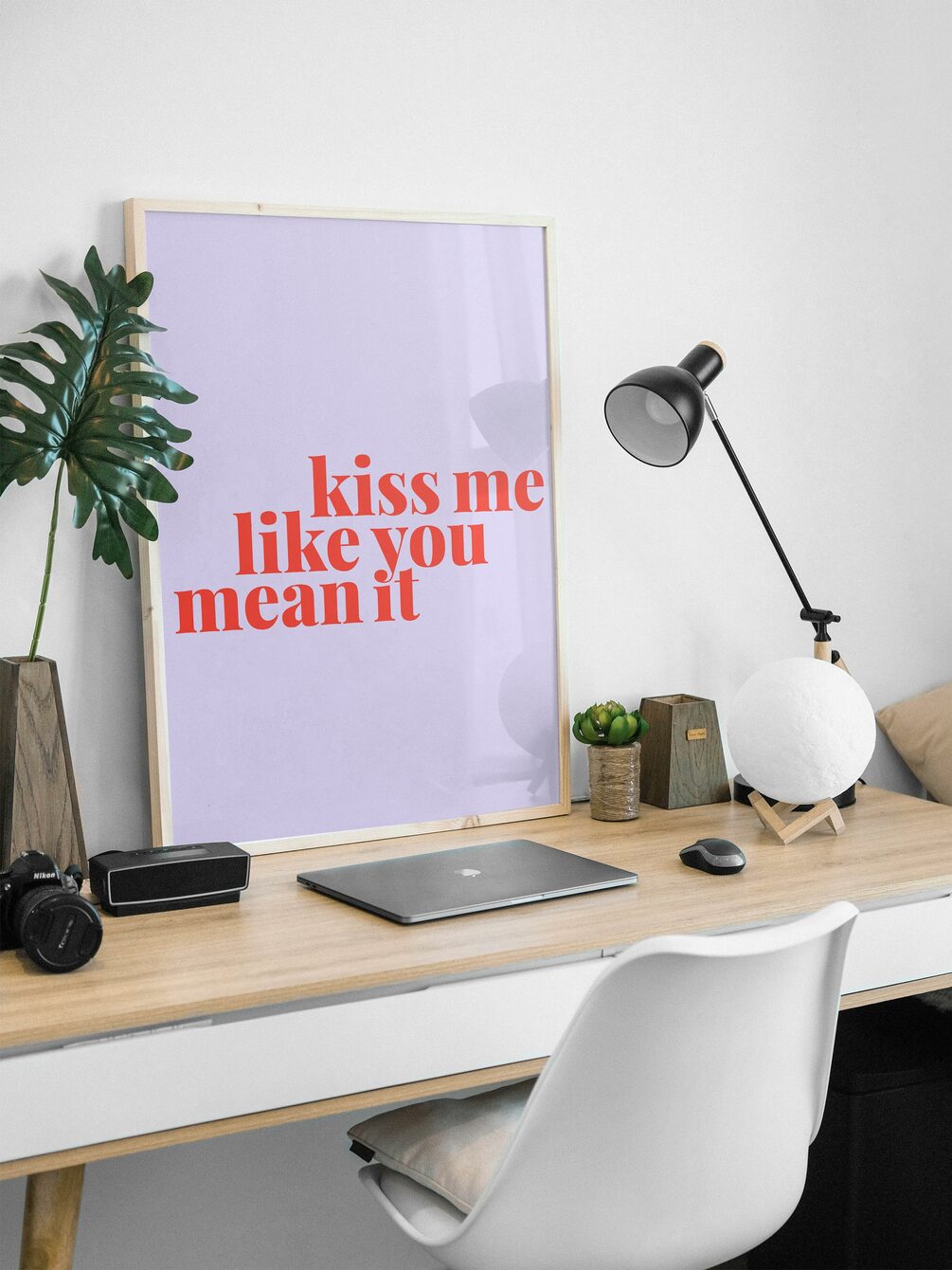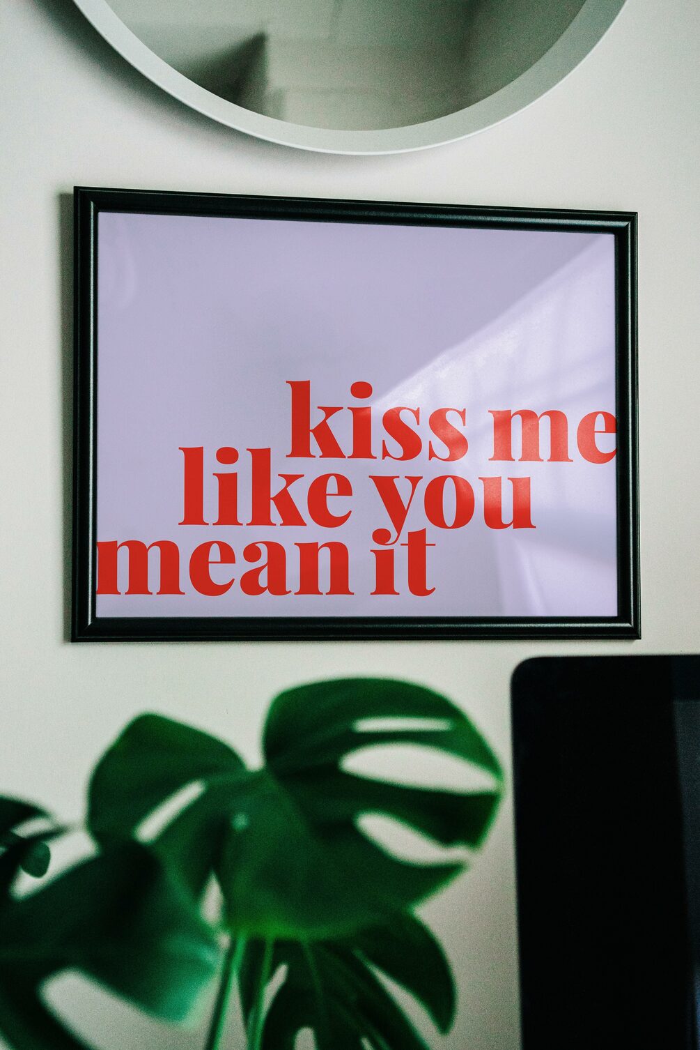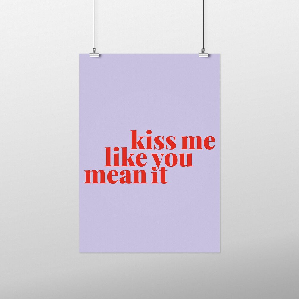 Graphic typography The Magnetic Fields poster with lyric quote from the song "Kiss me like you mean it". A fun way to add a bit of indie pop wall art to your home or give as a gift to a music lover.